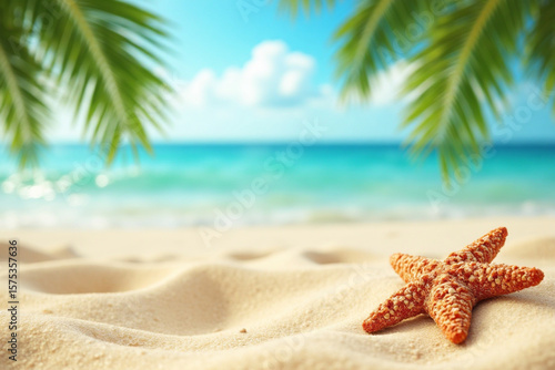 beach, sand, summer, background, sea, tropical, sun, star, starfish, shell, palm, holiday, travel, vacation, seashell, ocean, blue, blur, marin, relax, sky, seascape, sunny, day, aquatic, space, sunshine, coast, holiday maker, outdoors, paradise, relaxation, copy space, tranquil, water, nature, fish, seacoast, animal, island, object, wave, landscape