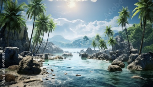 Tropical Bliss A Terragen Poster of Lively Palm-Fringed Waters