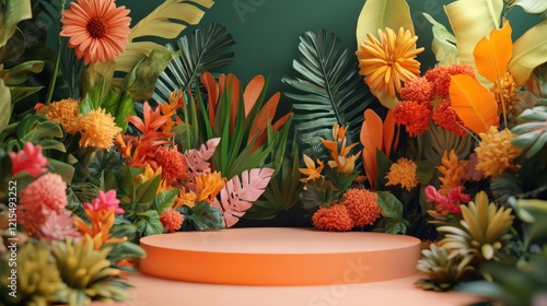 tropical, flower, greenery, lush, vibrant, floral, display, design, platform, colourful, decoration, nature, leaf, background, jungle, exotic, stylised, artistic, creative, floral arrangement, elegant, inspiration, botanical, floral background, natural beauty, foliage, flower petals, blooming, garden, environmentally friendly, summer, paradise, refined, impressive, detailed, decorative, dais
