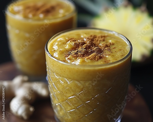 smoothie, tropical, fruit, healthy, ginger, pineapple, cinnamon, drink, delicious, refreshing, food, beverage, vitamin, wellness, tasty, breakfast, lunch, snack, summer, exotic, cookery, orange, yellow, gold, juicy, vibrant, diet, nourishment, organic, natural, receipe, photo, lifestyle, energy, power