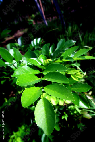 " tropical garden background, vertical view of green leaf pattern facing forward"