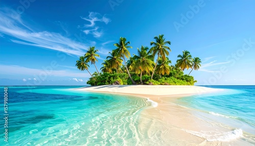 island, tropical, beach, ocean, blue, sky, palm, tree, white, sand, water, tranquil, lush, green, calm, sunny, beautiful, exotic, vacation, paradise, scenic, nature, pristine, turquoise, clear, calmness, serenity, stunning, picturesque, summer, travel, relaxation, dream, escape, inspiring, serene, idylli, amazing, gorgeous, peaceful, delightful, honed
