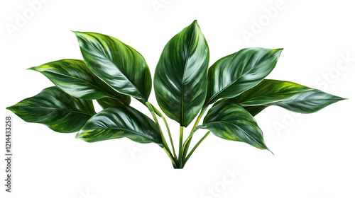 Tropical Leaf Arrangement: A cluster of vibrant green leaves, adorned with silvery veins, create a lush and inviting tropical foliage arrangement, perfect for adding a touch of nature to your designs.