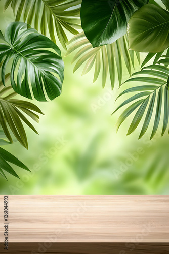 tropical, leaf, jungle, plant, wood, table, background, sunny, sky, green, leaf, nature, summer, forest, exotic, plant, natural, fresh, environment, botanical, wooden, bright, paradise, rainforest, pattern, wallpaper, season, flora, foliage, monstera, palm, design, texture, decoration, frame, template, surface, copy, space, blank, board, desk