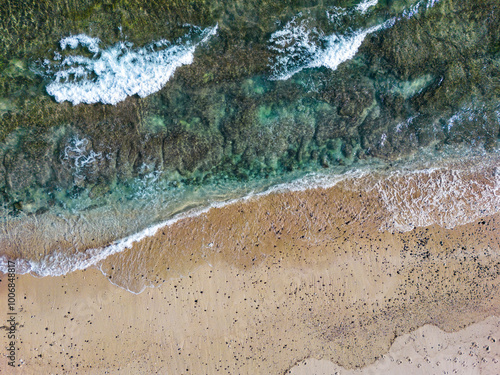Tropical ocean water abstract texture background with sea surface, wave and beach in Indonesia