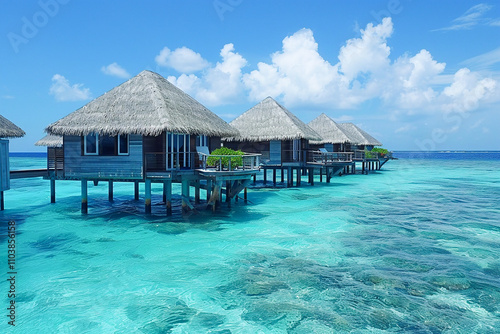 bungalow, tropical, ocean, sea, vacation, resort, clear, turquoise, water, island, paradise, relaxation, travel, holiday, luxury, peaceful, escape, destination, summer, exotic, beach, nature, view, blue skies, horizon, get-away, private, retreat, spa, maldives, polynesia, tranquil, aquatic, accommodation, scenic, remote, tropical paradise, clearwater