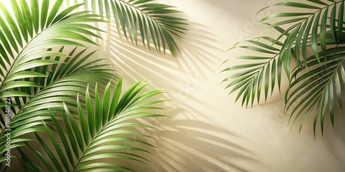 Tropical Palm Leaves Casting Shadows on a Light Beige Background