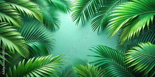 Tropical palm leaves in vibrant green colors, tropical, palm leaves, exotic, foliage, jungle, botanical