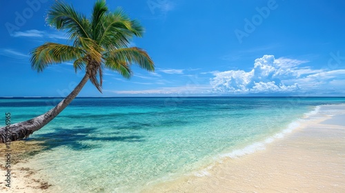 beach, ocean, palm, tree, sand, tropical, sea, sky, summer, sun, water, paradise, shore, coast, turquoise, blue, cloud, white, clear, wave, shoreline, relaxation, vacation, holiday, travel, island, escape, calm, serene, seascape, landscape, nature, photo, scenic, beauty, idylli, honed, caribbean, sunshine