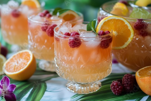 tropical, raspberry, citrous, punch, crystal, ice, refreshing, beverage, orange, fruit, drink, cocktail, summer, party, vibrant, glasses, table, garnish, juicy, fresh, colourful, exotic, cool, sliced, celebration, event, convivial, inviting, lush, hydratation, sunny, floral, festive, enjoyment, zest, invigorating, radiant, leisure, thirst quenching