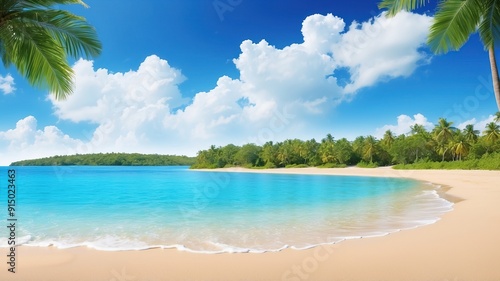 beach, sea, ocean, sky, summer, sand, water, tropical, palm, island, landscape, nature, tree, travel, sun, coast, paradise, vacation, cloud, seascape, horizon, resort, relax, wave, cloud