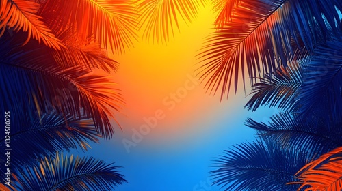 palm, leaf, tropical, sunset, summer, beach, ocean, sky, vibrant, colours, orange, blue, nature, background, texture, design, element, illustration, wallpaper, graphic, pattern, abstract, bright, warm, exotic, holiday, vacation, paradise, serenity, calmness, relaxation, peaceful, escape, travel, journey, adventure, carefree, joyful, happiness, fun, lively, energy, mood, atmosphere, scene, view, image, photo, art
