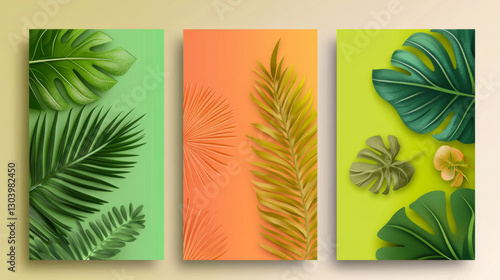 Tropical themed banners with vibrant palm leaves and textures