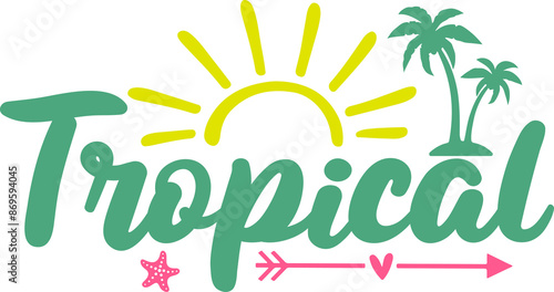 Tropical typography clip art design on plain white transparent isolated background for sign, decal, card, shirt, hoodie, sweatshirt, apparel, tag, mug, icon, poster or badge