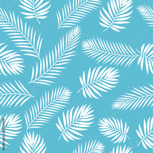 Tropical white palm tree leaves seamless pattern. Cute floral ba