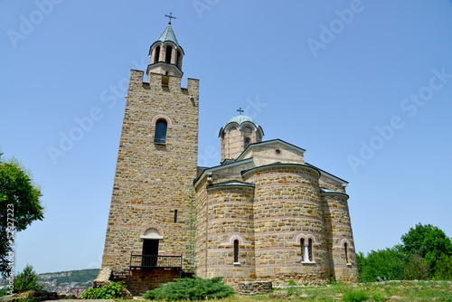 bulgaria, hill, tree, mediaeval, stone, gate, green, white, travel, landmark, culture, castle, fort, entrance, traditional, building, bulgarian, holiday maker, fortress, church, wall, forest, tradition, architecture, blue, mountain, sky, tour tourism, kingdom, structure, stronghold, landscape, capital
