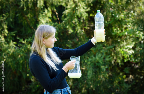 wine, low, alcohol, traditional, grape, white wine, wine glass, new, green, grass, fruit, summer, glasses, juice, health, fermentation, fermented, must, sweet, drink, young, harmonic, smell, season, vegan, beginning, drunk, czechia, typical, fluid, liquid, beverage, autumn, plastic, bottle, grape leaf, pitcher, garden, outside, woman, tasting, gustation, spilling