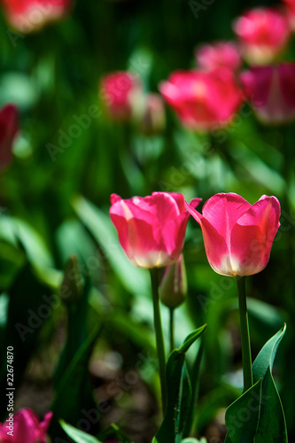 agriculture, background, beautiful, blooming, blossom, blur, bud, bunch, buttons, colours, coloured, divide, field, floral, flower, sharpened, garden, green, group, half, head, holland, leaf, many, meadow, nature, outdoors, pattern, pink, plant, row, rural, saturated, season, selective, spring, stem, striped, summer, sunlight, tulip, vibrant
