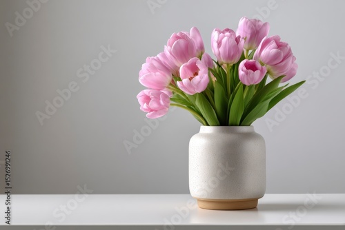 tulip, vase, flower, flora, floral, bouquet, arrangement, bloom, blossom, leaf, plant, pink, light, bright, studio, shot, table, modern, home, decor, decoration, ceramic, design, object, indoor, simple, minimal, elegance, aesthetic, freshness, beauty, peaceful, serene, quiet, calm, stillness, still, nature, gift, botanical, interior, clean, background, life, neutral, tabletop, surface
