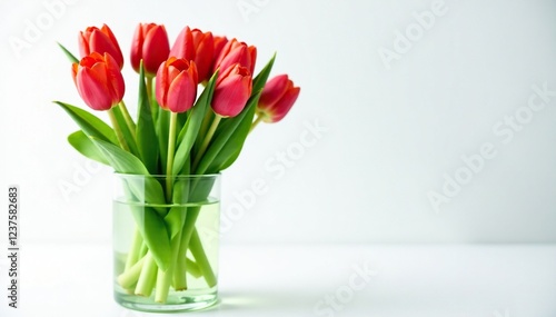 Tulips with stems submerged in a glass container filled with water, water, floral