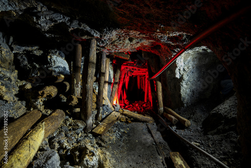 background, light painting, red, blue, darkness, industry, tunnel, mine, abandoned