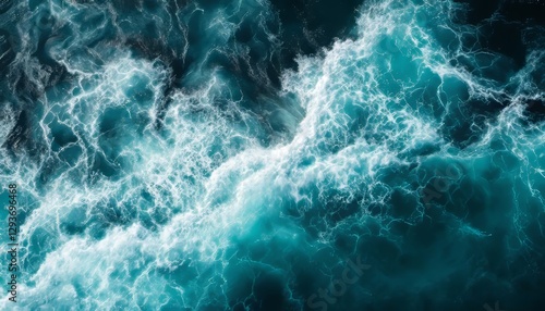 Turbulent ocean waves with white foam and turquoise waters in motion