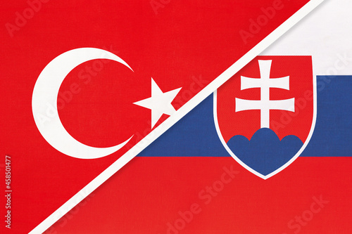 Turkey and Slovakia, symbol of country. Turkish vs Slovak national flag
