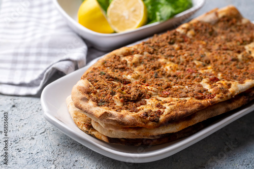 Turkish and Arabic Traditional Ramadan Bread Sliced Etli Ekmek or Pide