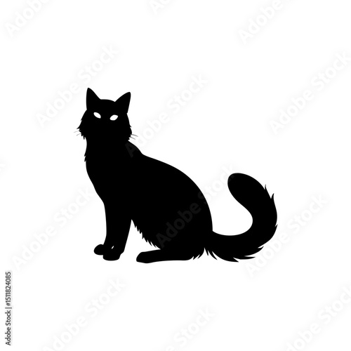 Turkish Angora Cat Silhouette Isolated on Transparent Background