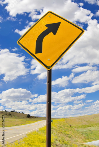 signs, mark, direction, posted, post, metal, visible, green, fluorescent, shiny, colorado, outside, road, sky, cloudy, cloud, sunny, day, daytime, travel, blue, white, summer, hot, curve, yellow