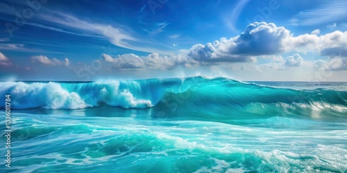 Turquoise ocean waves meet deep blue sky, ocean scene, blue wavy background, ocean scene,blue wavy background, abstract