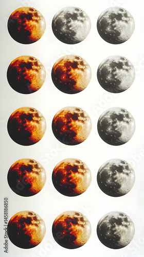 moon, phase, sticker, celestial, orange, grey, silver, fiery, lunar, cycle, night, astronomy, space, cosmos, universe, round, circular, design, art, graphic, illustration, pattern, repeat, series, sequence, progression, transition, change, transformation, full, gibbous, waning, waxing, crescent, dark, light, shadow, glow, gradient, celestial bodies, satellite, earth, orbit, science, nature, mystical, magical, beauty