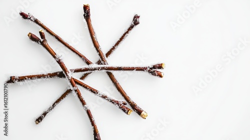 Twigs with Frosty Sugar Coating on White Background for Winter Aesthetic