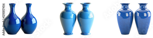 Twin blue vessels isolated on transparent background, PNG, Set of