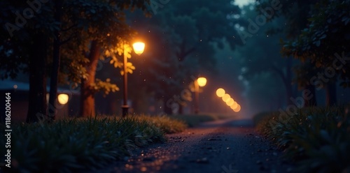 Twinkling lights in the darkness of a summer evening, evenig, twinkly, ambient