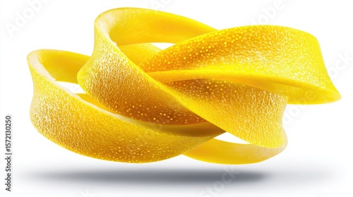 Twisted citrus peel in vibrant yellow.