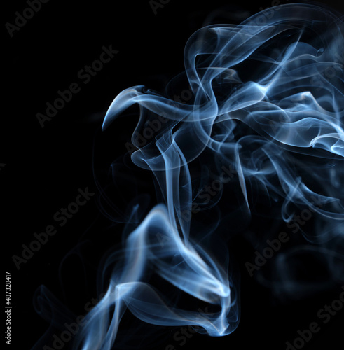 Twisted plumes of smoke, smoke movement on a black background. Abstract smoke lines