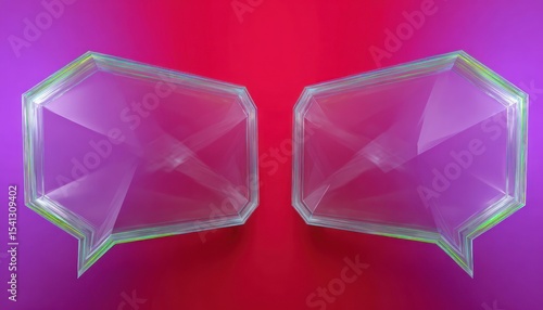 abstract, speech, bubble, geometric, transparent, purple, red, gradient, three-dimensional, modern, design, digital, shape, art, graphic, visual, colourful, communication