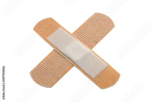 Two adhesive bandages crossed isolated on a white background