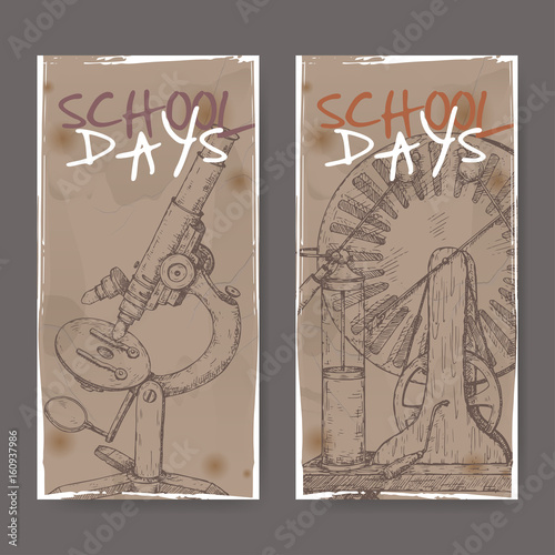 set, banner, template, label, vintage, microscope, biology, chemistry, physics, generator, spark, electricity, equipment, research, education, retro, antique, traditional, study, school, college, vector, hand-drawn, drawing, line art, design, vignetting, simple, lesson, discovery, illustration, class, science, children, student
