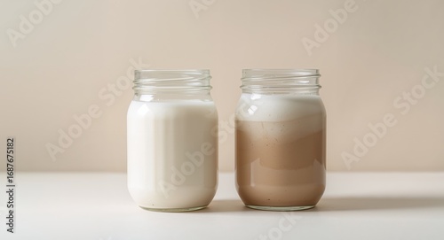 beverage, glasses, white, brown, liquid, smooth, texture, light, contrast, neutral, minimalism, food, still, life, drink, jar