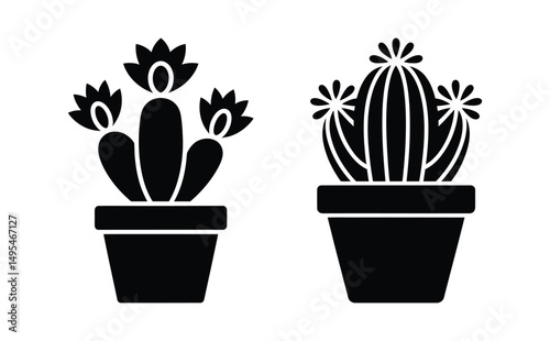 cactus, cactus, flower, flower, succulent, succulent, botanical, plant, houseplant, houseplant, black-and-white, icon, symbol, clip art, gardening, decoration, nature, flora, desert plant, succulent plant, garden, silhouette, potted plants