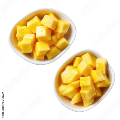mango, diced, cubed, fruit, fresh, healthy, sweet, yellow, bowl, ripe, tropical, juicy, delicious, vegetarian, vegan, snack, dessert, ingredient, food, nourishment, vitamin, antioxidant, background, isolated, closeup, studio shot, exotic fruit, raw, cut, white, organic, presentation, serving, vibrant