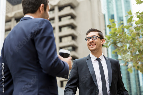 talking, businessman, business, adult, male, discussion, outdoors, smiling, colleague, man, city, people, happy, man, caucasian, suit, 2, person, businessman, businessperson, two people, business suit, city life, together, urban scene, horizontal, hot drink, men at work, human relationships, professional, cup, occupation, chatting, standing, discussing, 30s, outside, working, taking, break, co-worker, businessperson