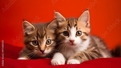 two cats on red background