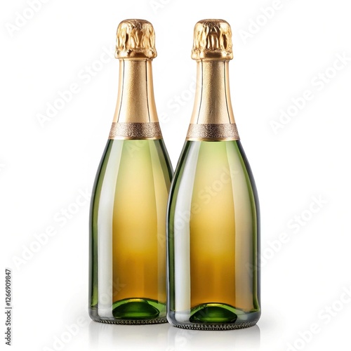 Two Champagne Bottles with Gold Foil - Two bottles of champagne, one green and one gold, both adorned with gold foil, giving them a festive and luxurious look.