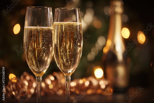 champaign, sparkling wine, celebration, holiday, new year's eve, festive, gold, party, celebratory, luxury, elegant, drink, wine, glassware, night, decoration, light, christmas, new year, event, special occasion, nightlife, alcohol, illuminated, sparkle, happy new year, shiny, gold, glowing, bubble, christmas ornament, holiday lights