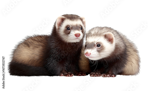 Two Charming Domestic Ferrets Posing Together isolated on a transparent background