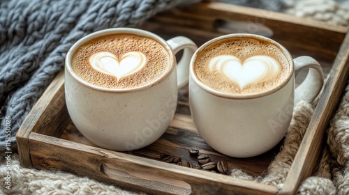 hot drink, mug, nubes, foam, art, tray, wooden, cosy, latte, cappuccino, love, rustic, warm, romantic, drink, pair, aesthetic, tabletop, couple, morning, relaxing, home, beverage, breakfast, brown, texture, design, decoration, craft, detail, lifestyle, table, interior, wood grain, chill, elegant, together, bond, february 14, february