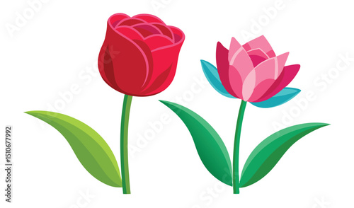 tulip, tulip, flower, flower, spring, bloom, blossom, red, pink, teal, green, leaf, plant, floral, botany, nature, illustration, vector, graphic, design, art, isolated, white, background, colourful, vibrant, bright, happy, fresh, beautiful, pretty, cute, simple, modern, minimalist, flat, style, cartoon, drawing, decorative, element, pattern, card, wallpaper